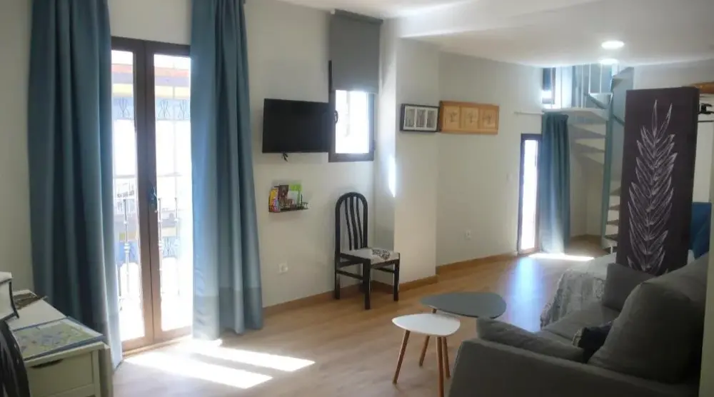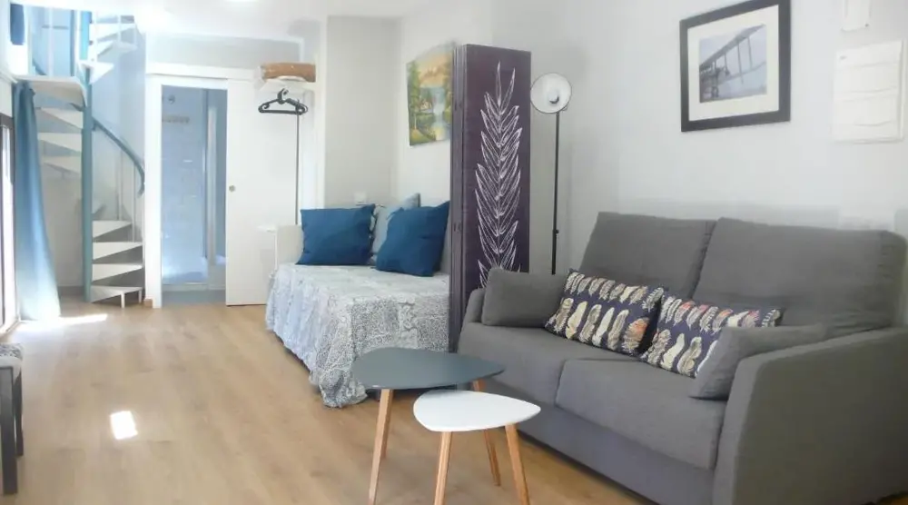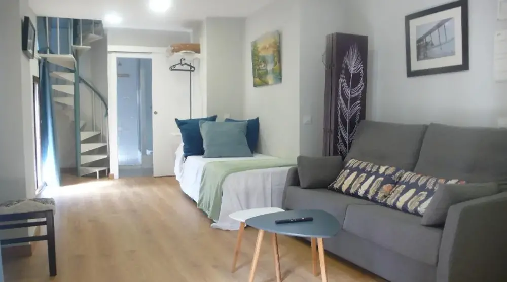 El apartamento está en dos plantas y se accede a la superior por una escalera de caracol super estrecha